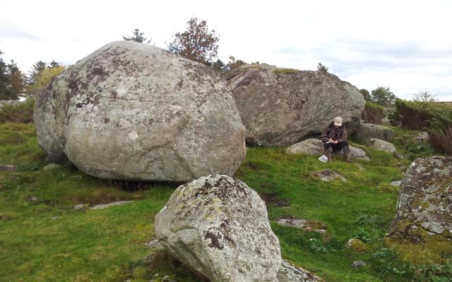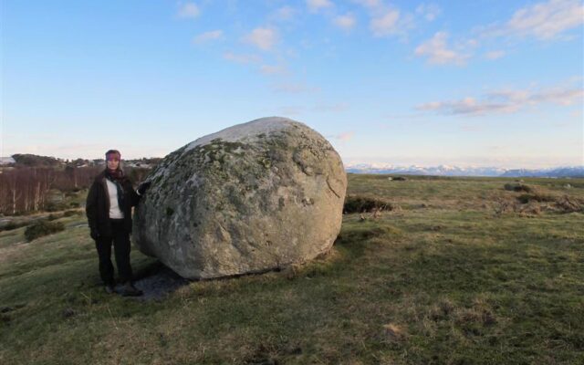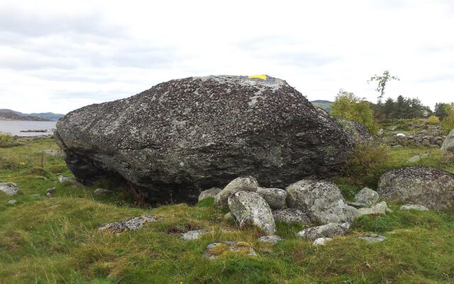 “Kjempen” (kilde Kurt Wathne) ligger ved sti vest-øst ved kraftlinje. Ca. 60 meter fra hytte som ligger ved stranda i øst.