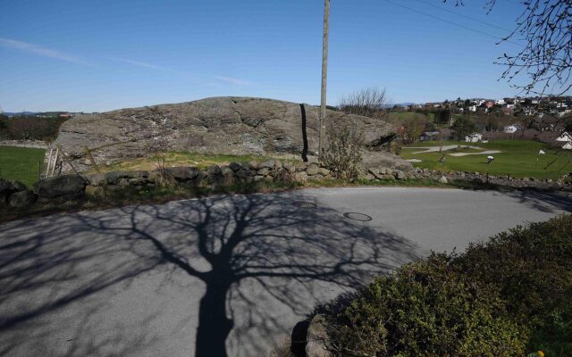 Steinen ligger i gammelt beiteområde, nå friområde.