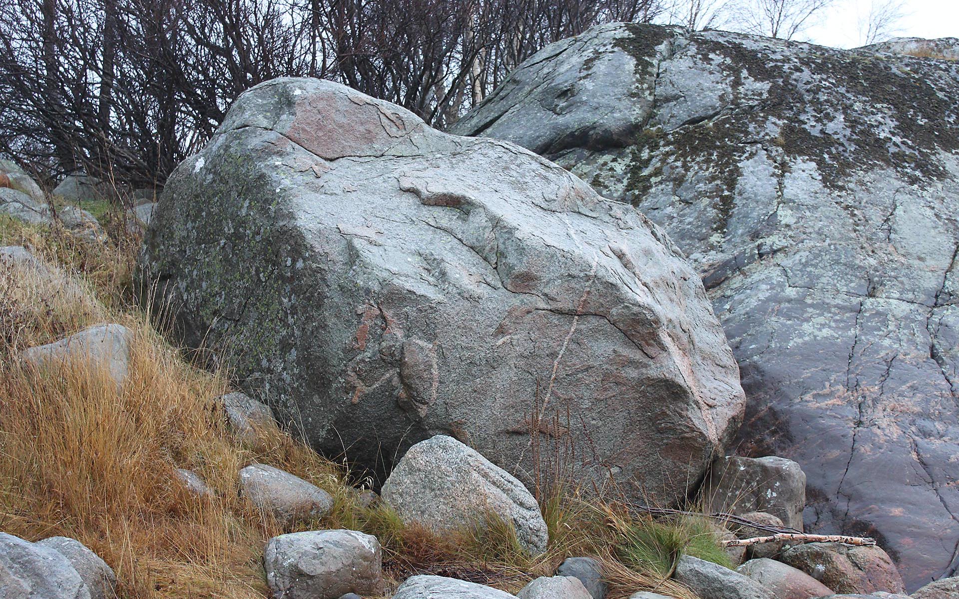 Granittstein, omtrent 4 meter høy og 14 meter i omkrets.