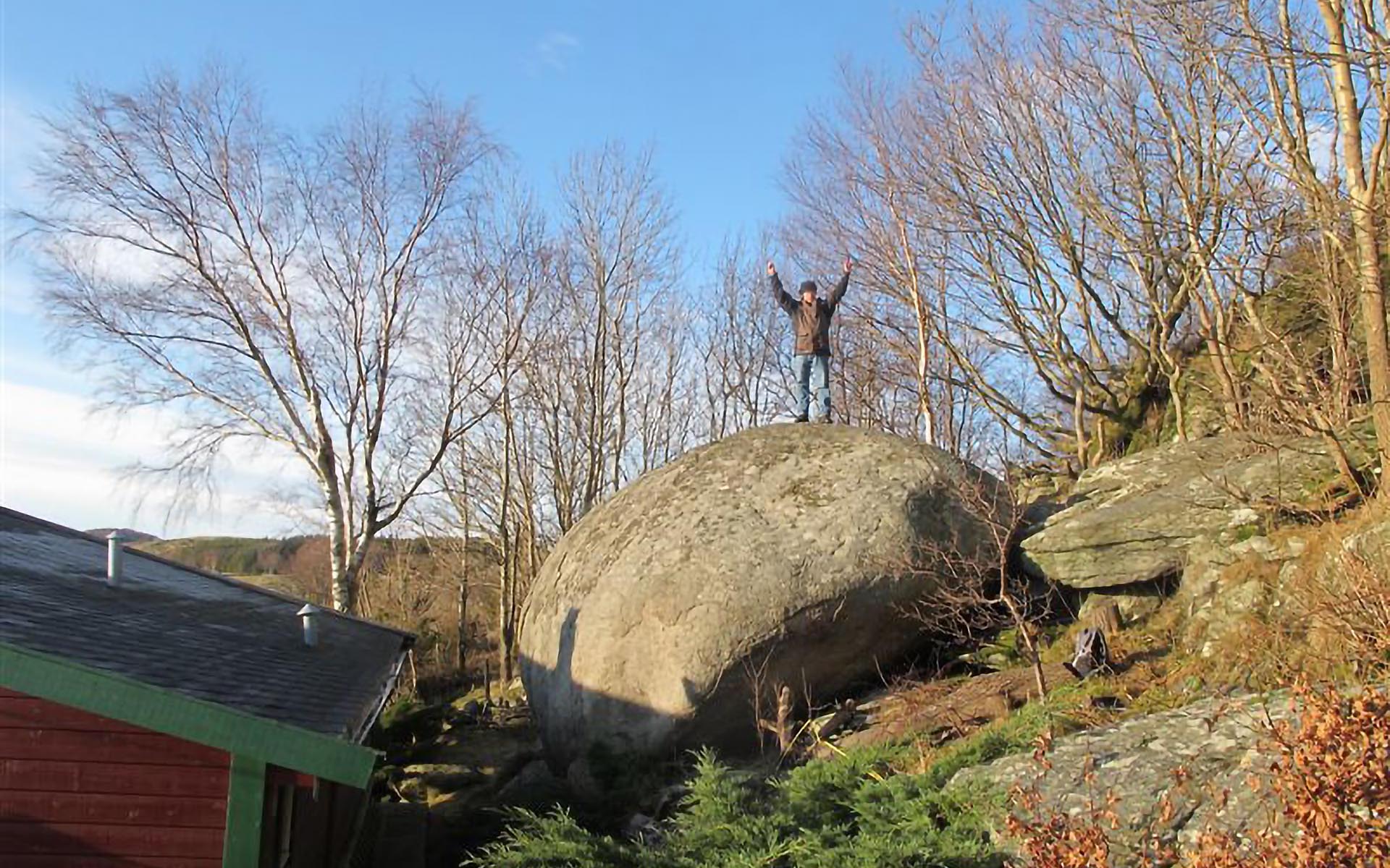 Sted: Stor stein ved Melingsjøvn, bak rød hytte ca 100m fra sjøen.