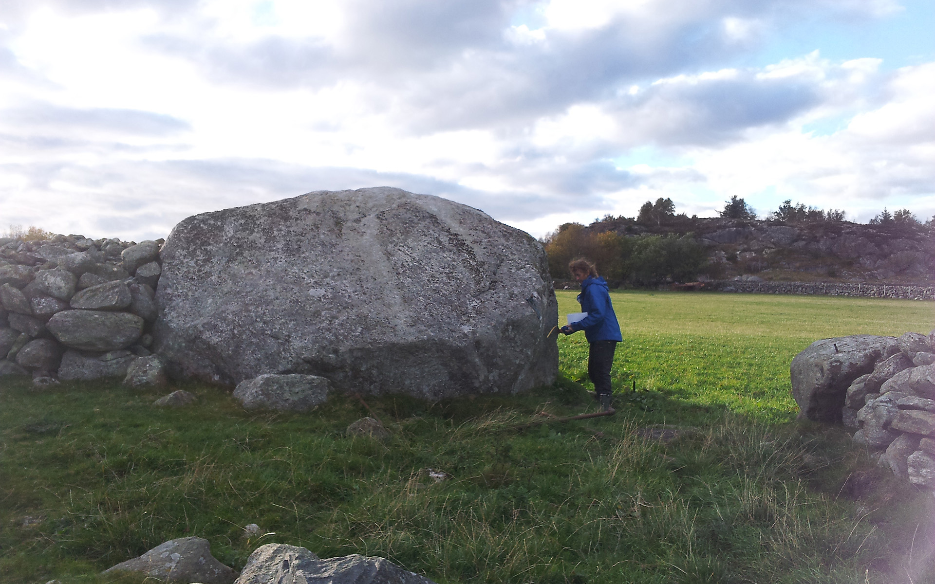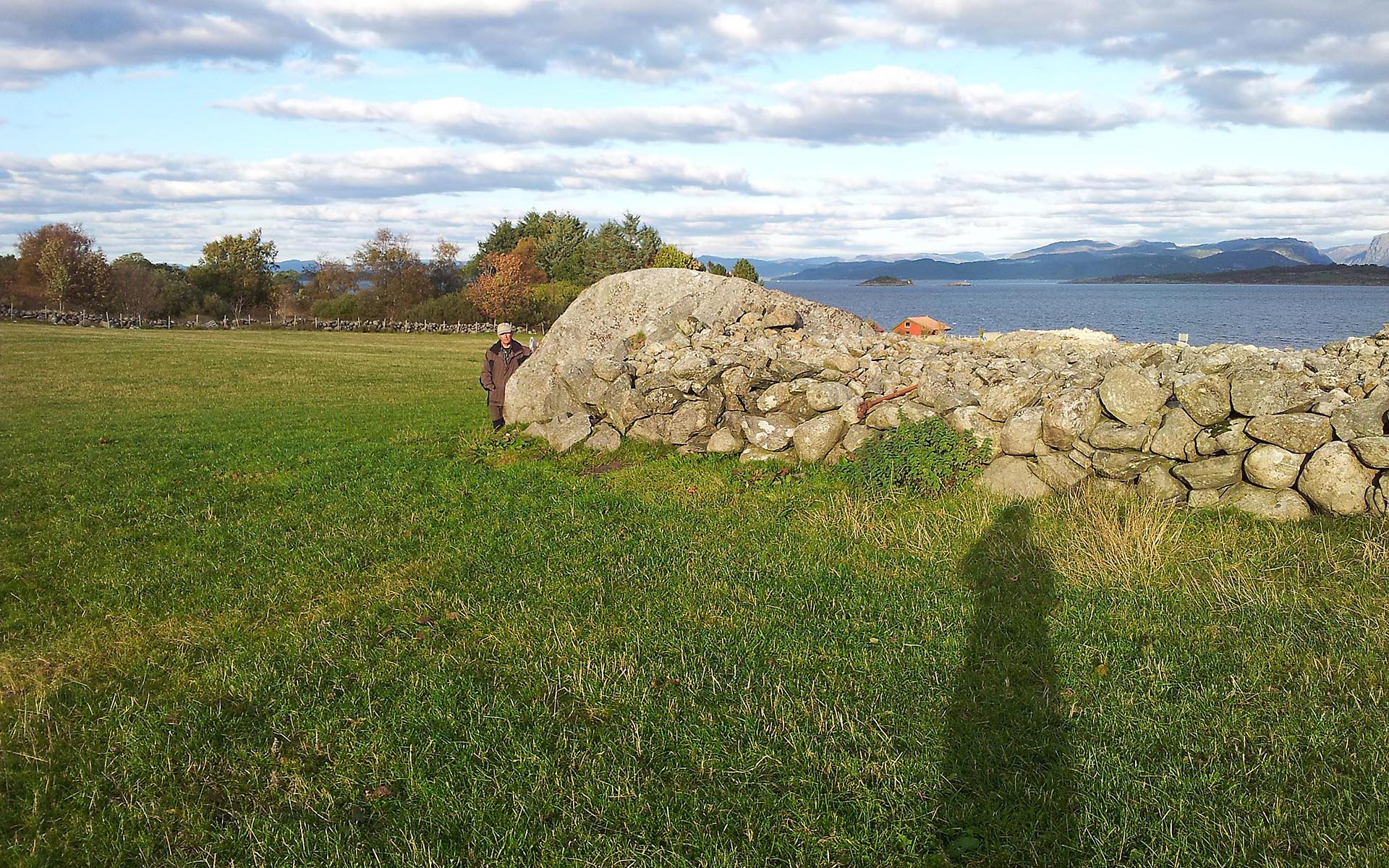 Sted: I stort steingjerde mellom innmark og beitemark nær sjøen helt Øst/Sør-Øst.