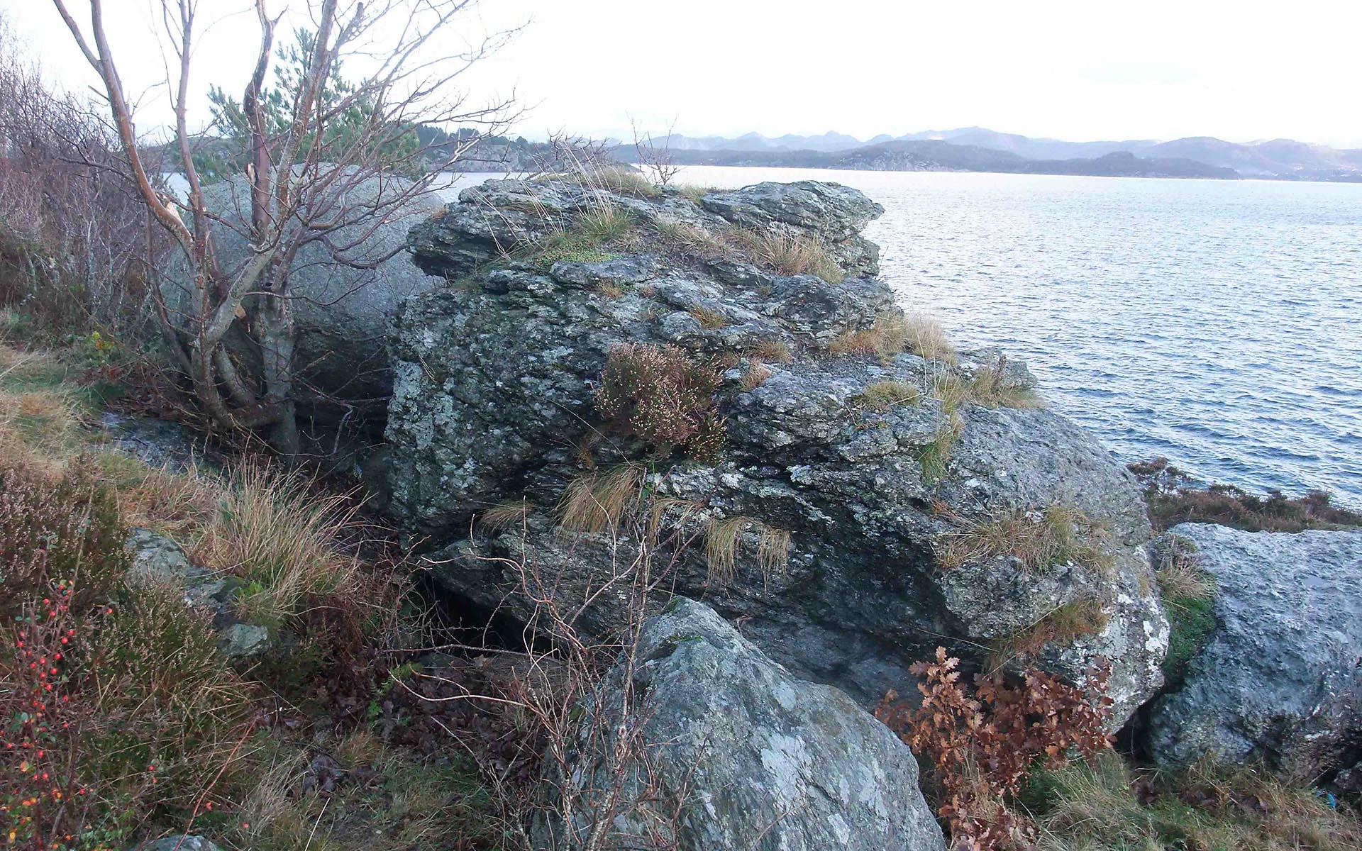 Sted: Sterkt oppsprukket og bevokst fyllittblokk ti meter fra sjøen.
