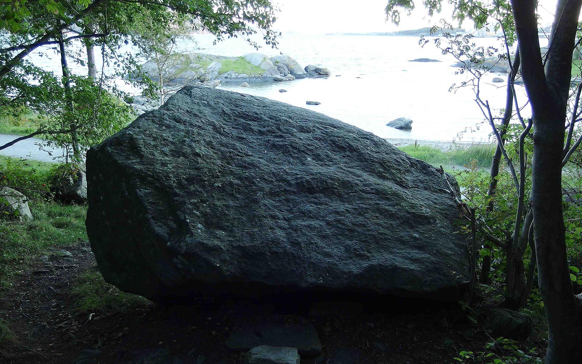 Sted: Stor flat blokk like ved turstien. Mye brukt av barn til klatring.