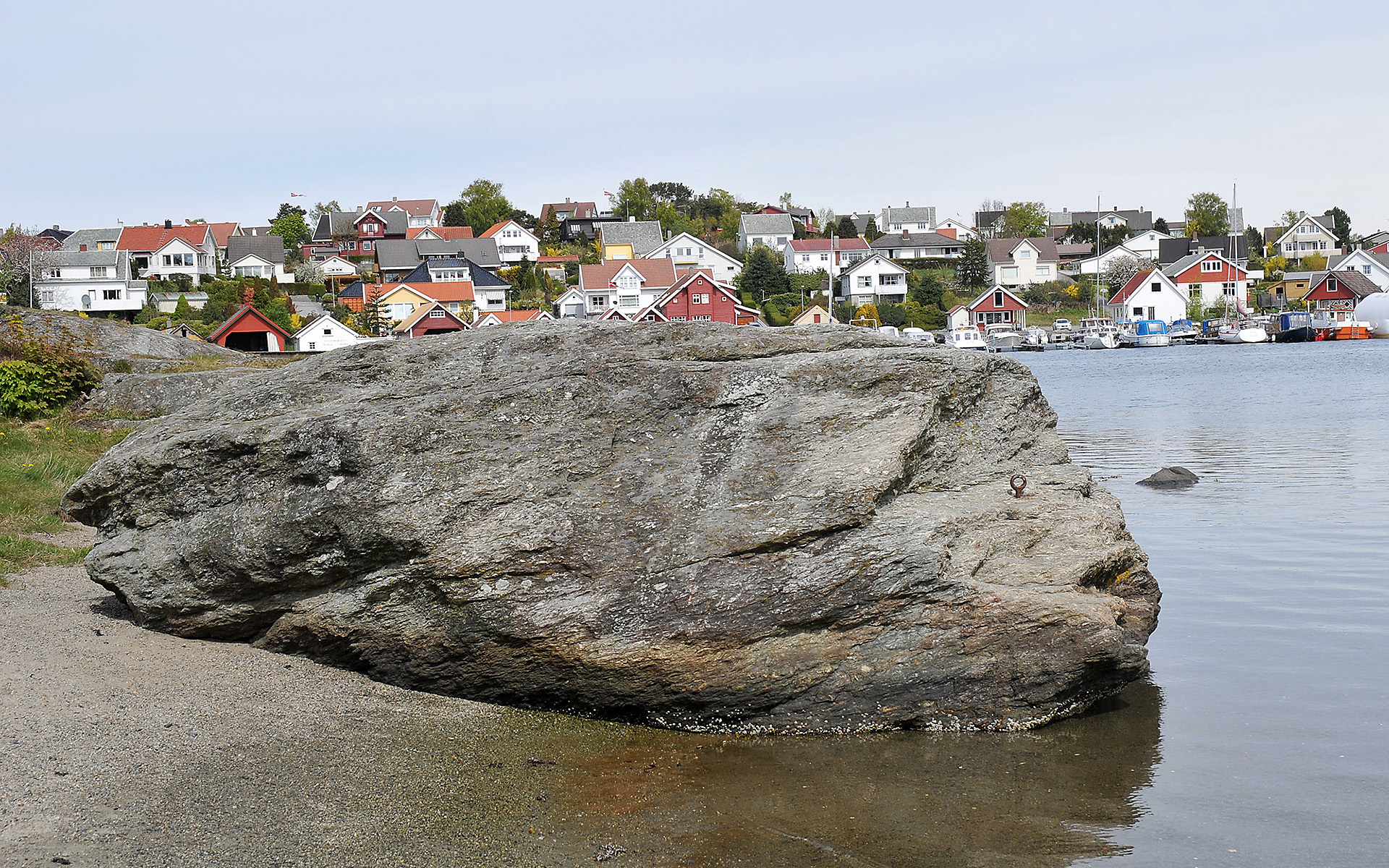 Særtrekk: Det er et fortøyningspunkt på sjøsiden av steinen.