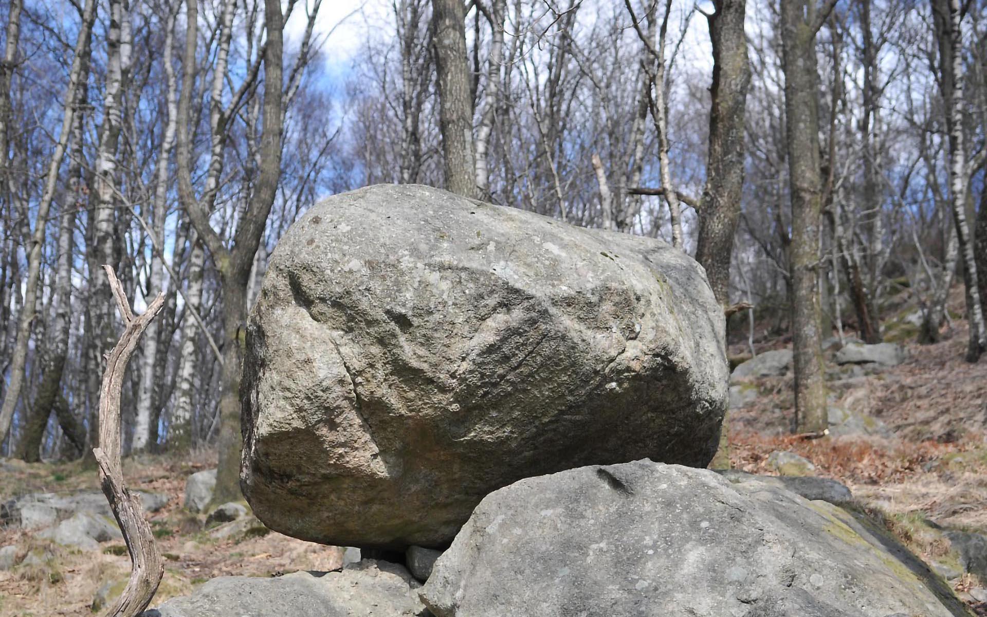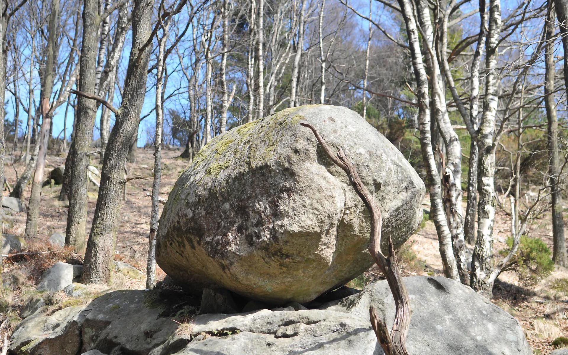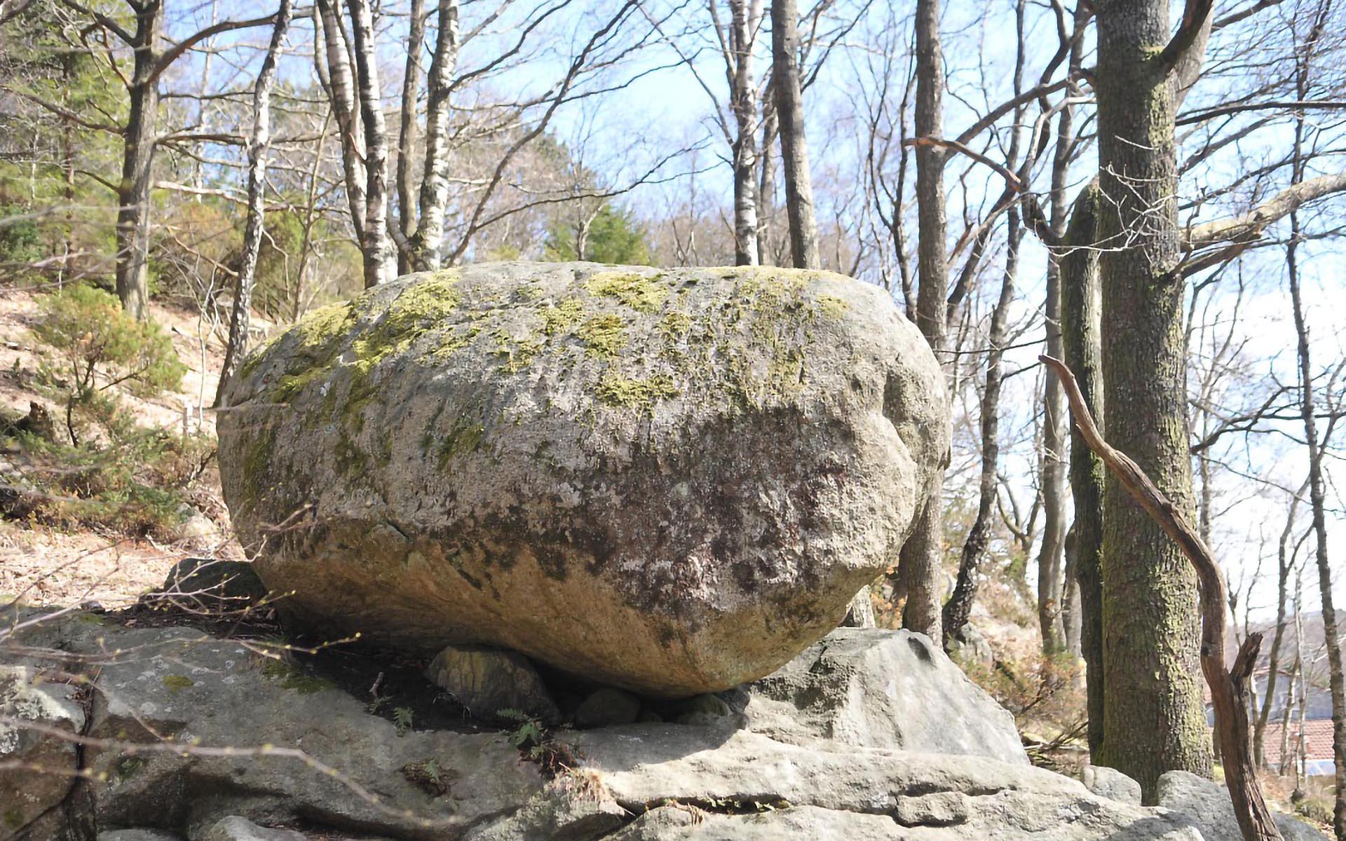 Særtrekk: Steinen ligger ytterst på en bergknaus, og nedenfor ligger en annen stor steinblokk, som ser ut til å ha rast ut av denne knausen.