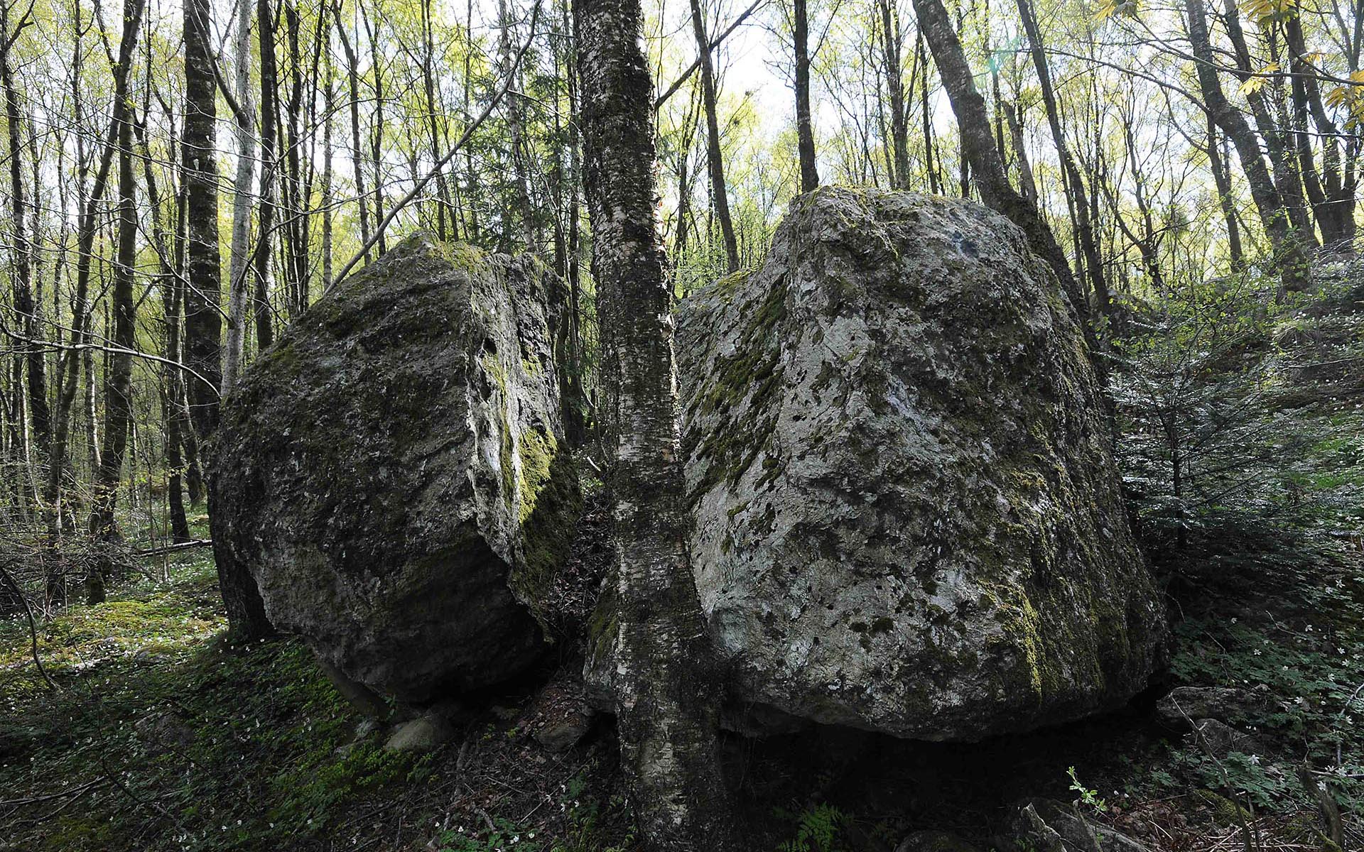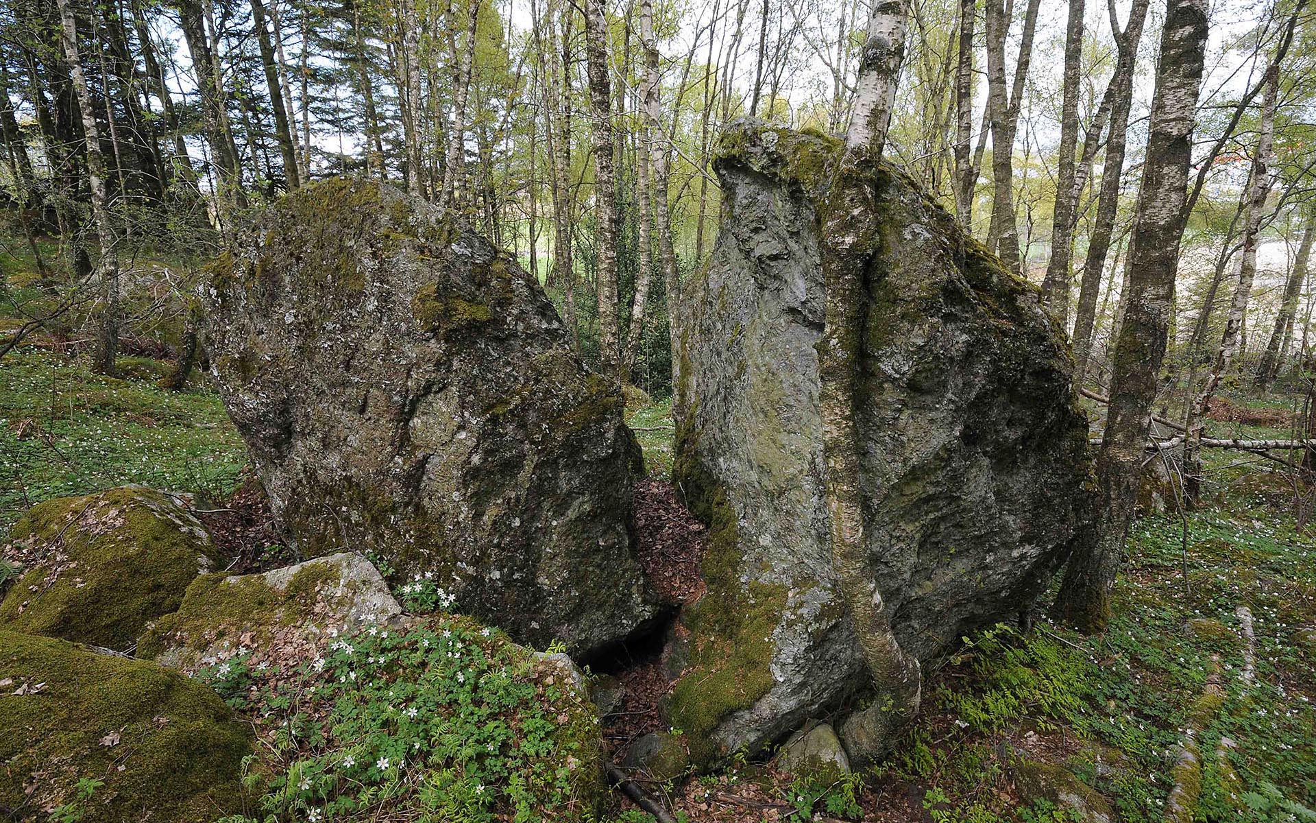 Dette er en klovstein i bjørkeskogen øst for turstien (Ungdomsgeilen).