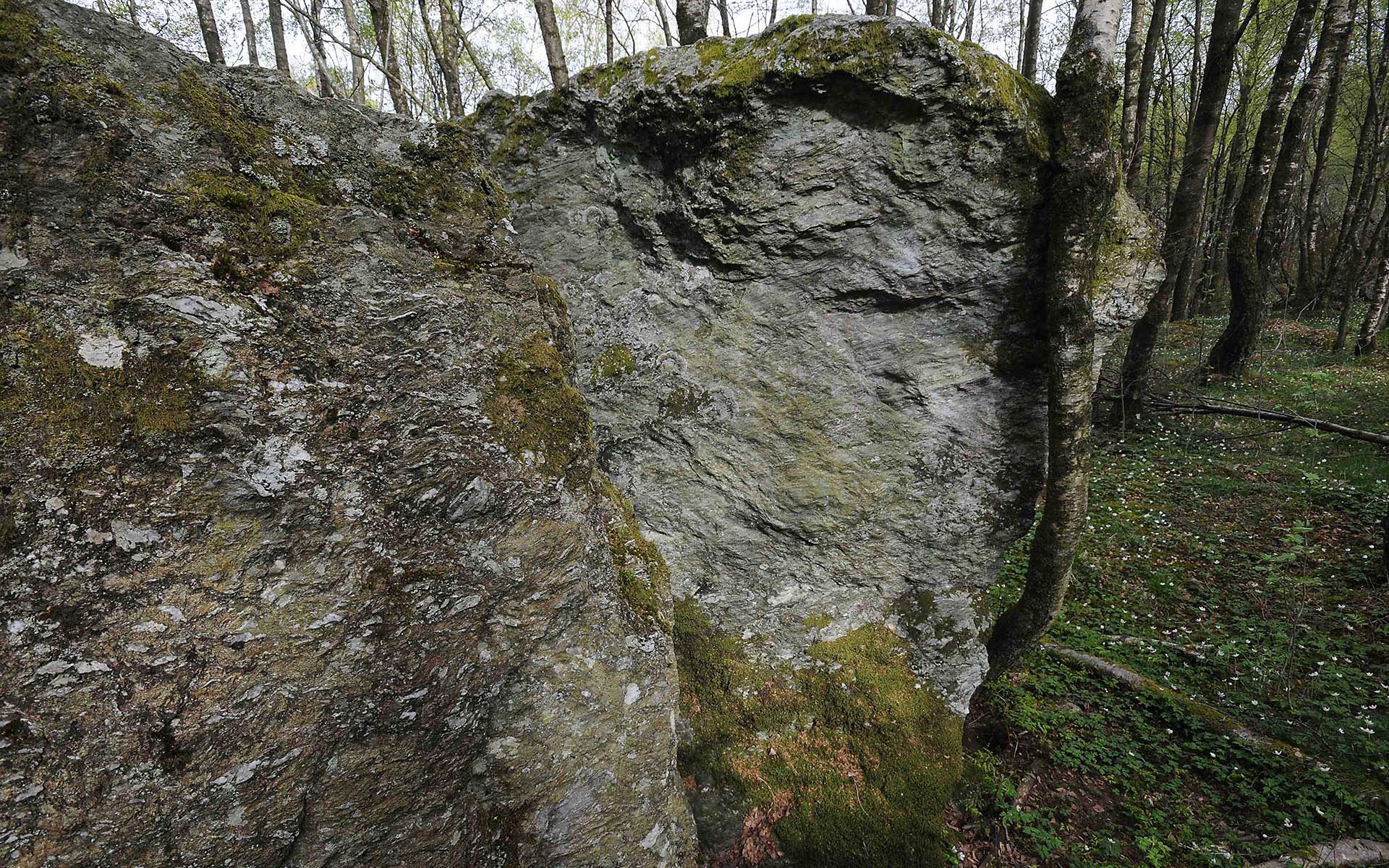 Sted: Klovstein i bjørkeskogen øst for turstien (Ungdomsgeilen).