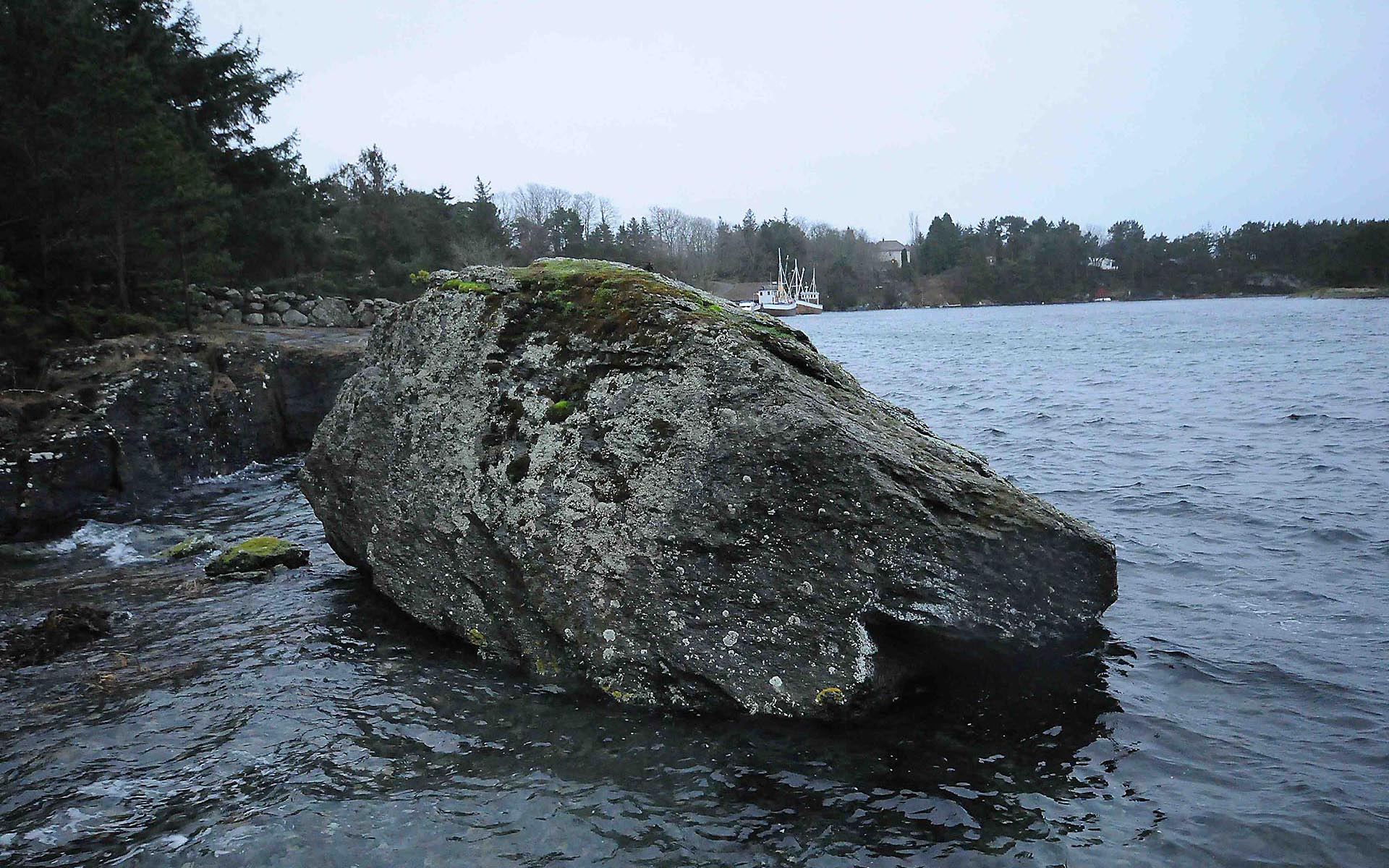 Sted: Ligger i sjøen vest på øya, 1-2 meter fra land, ca 200 meter nord for brygga til Middelthon.