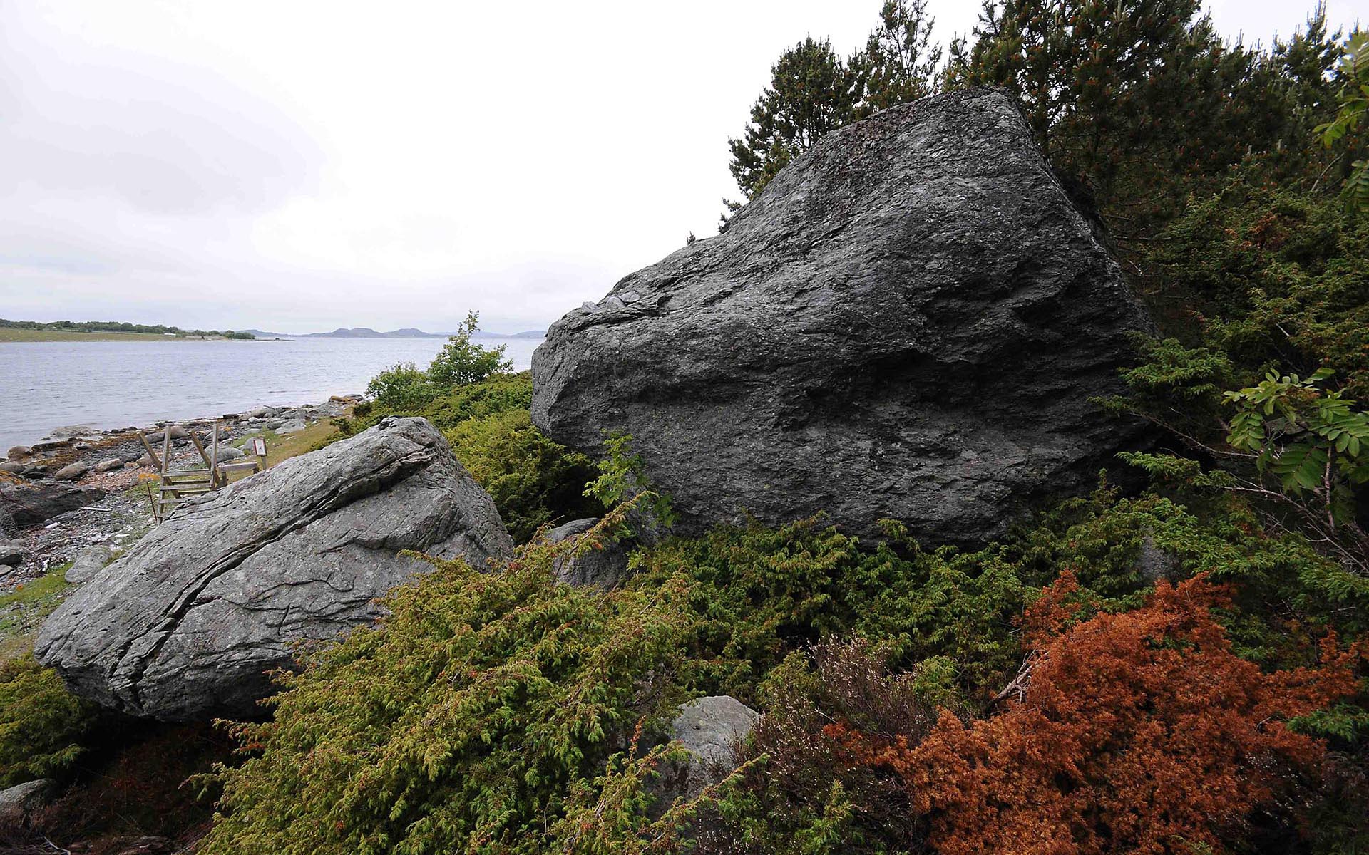 Sted: Steinen ligger i tett barskog på vestsiden 60 m fra sjøen, like nord for småbruket eid av Stavanger kommune og disponert av Lundsvågen naturskole.