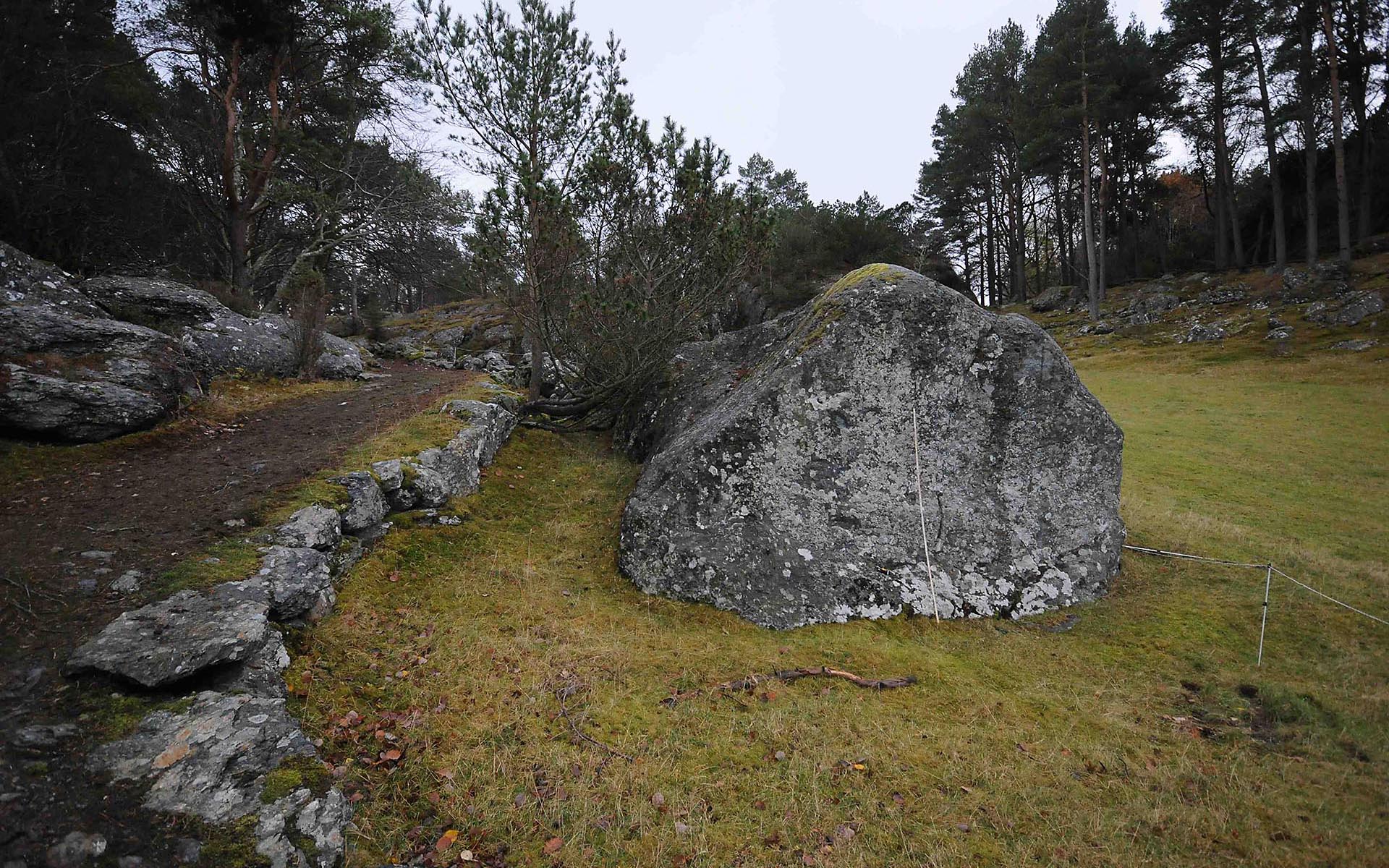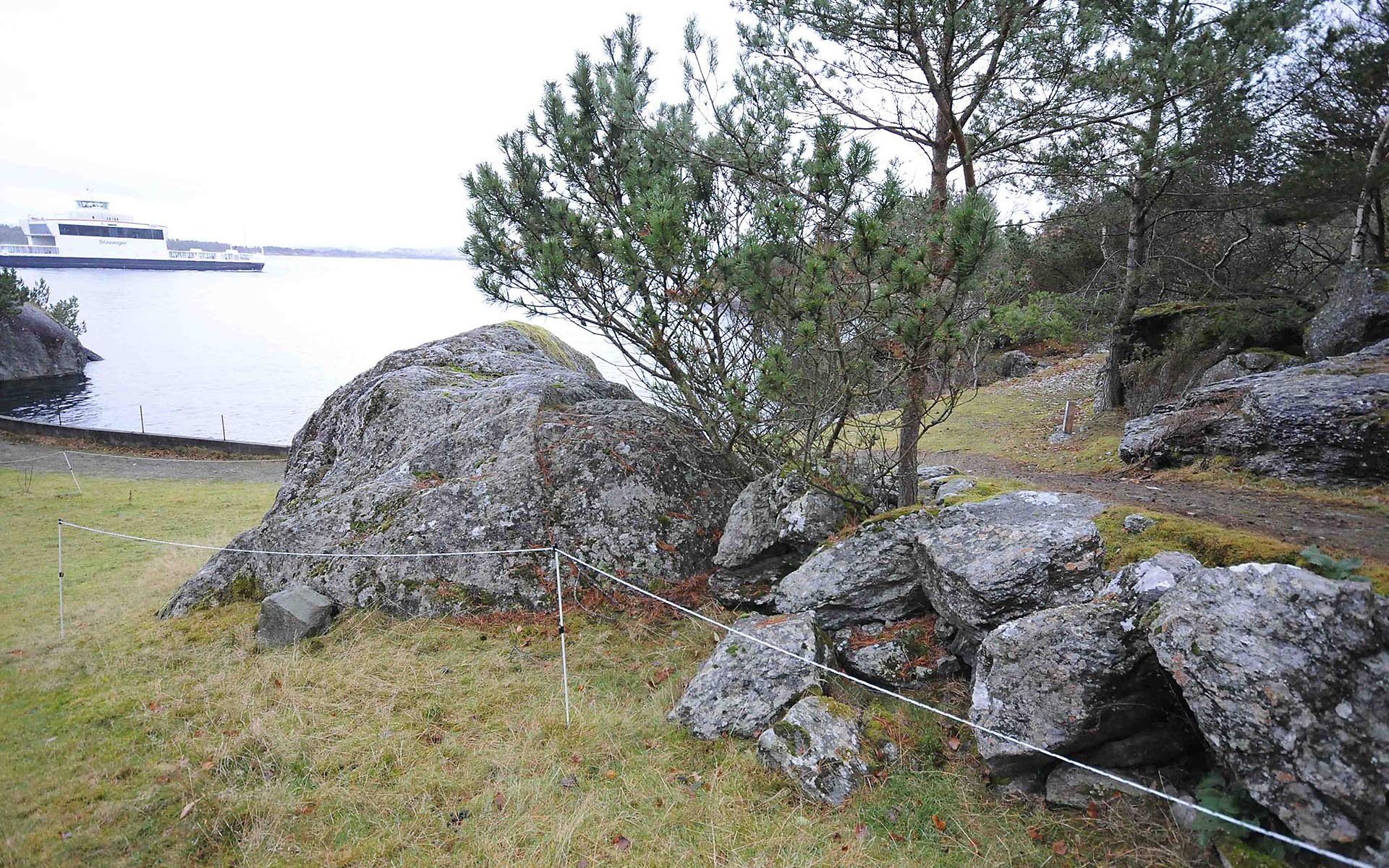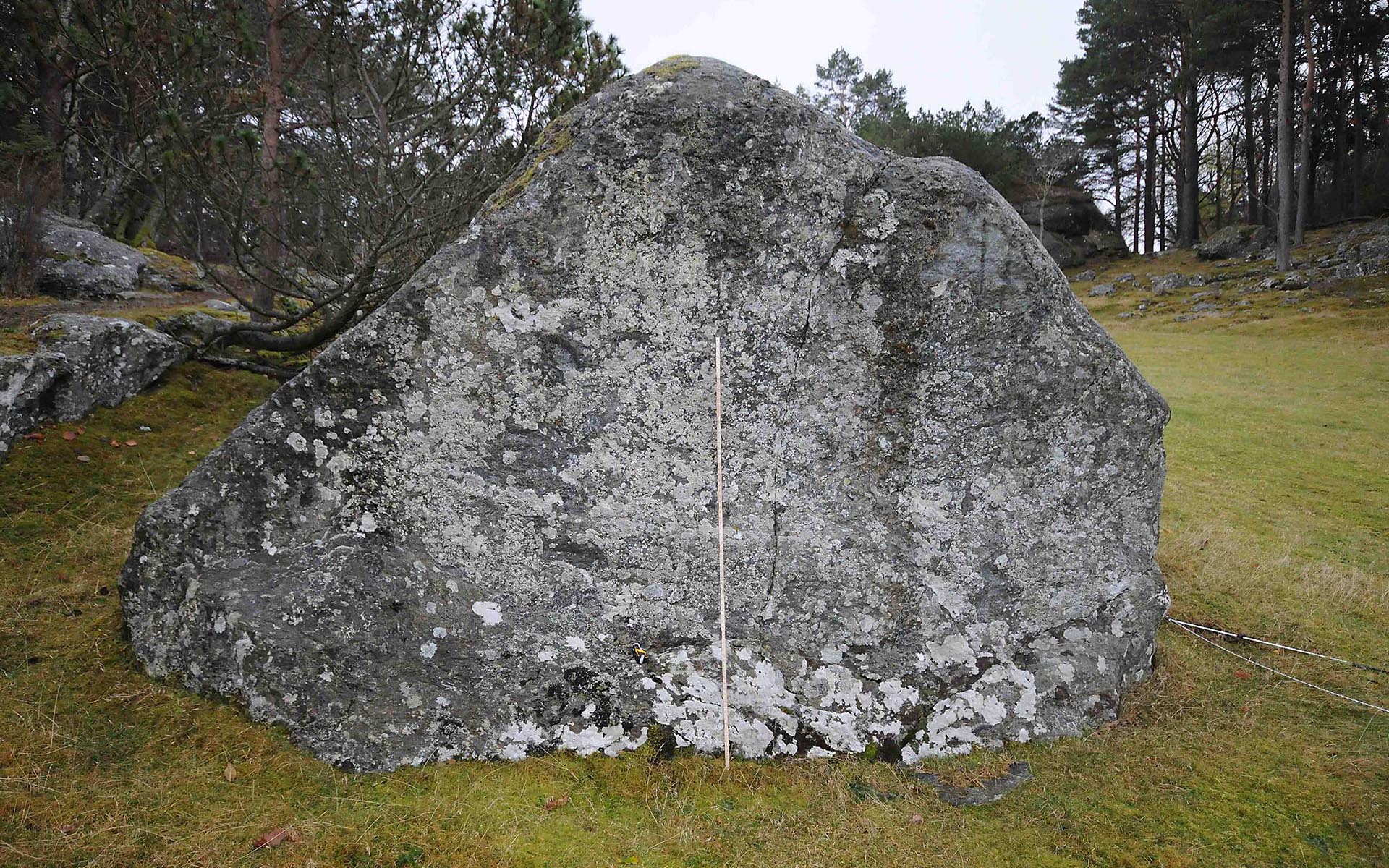 Sted: Markant stein på beitemark nord-vest på øya, like ved turvegen.