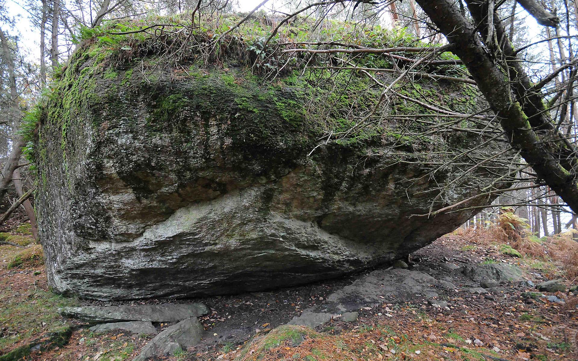 Særtrekk: Full ståhøyde under steinen mot nord.