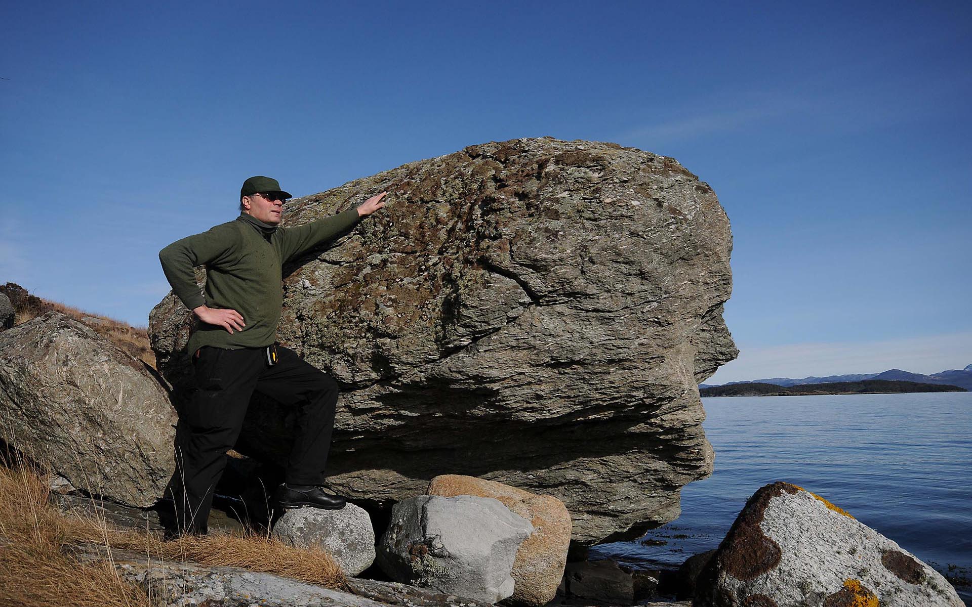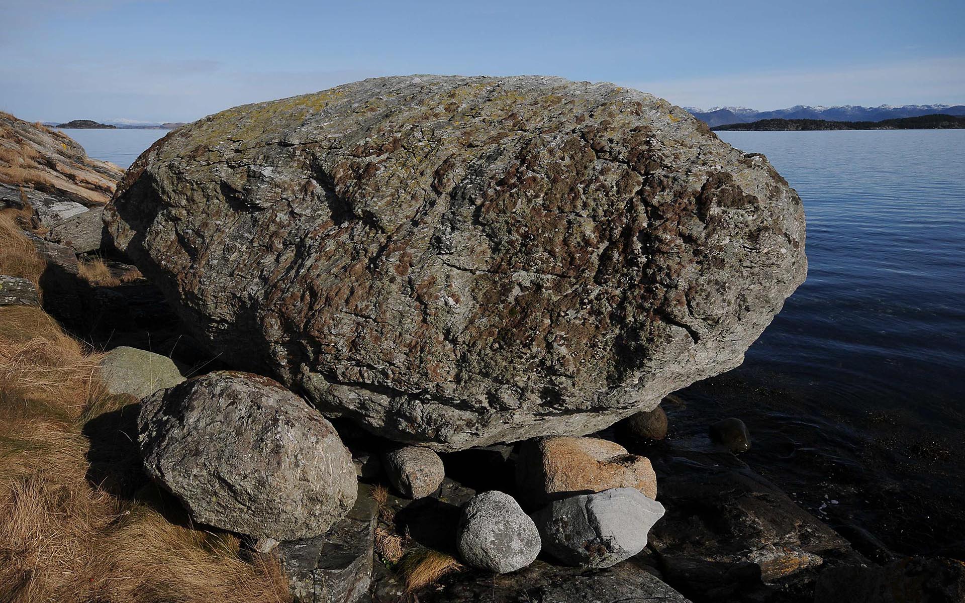 Litle Marøy, Storhaug. Blokken ligger ved sjøkanten på øyas NØ side.