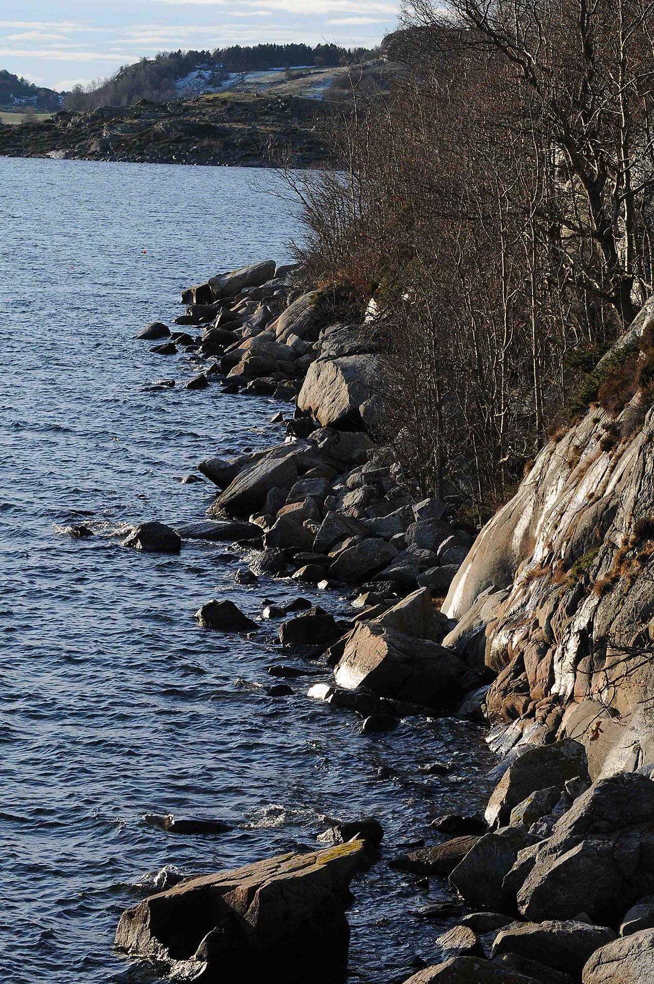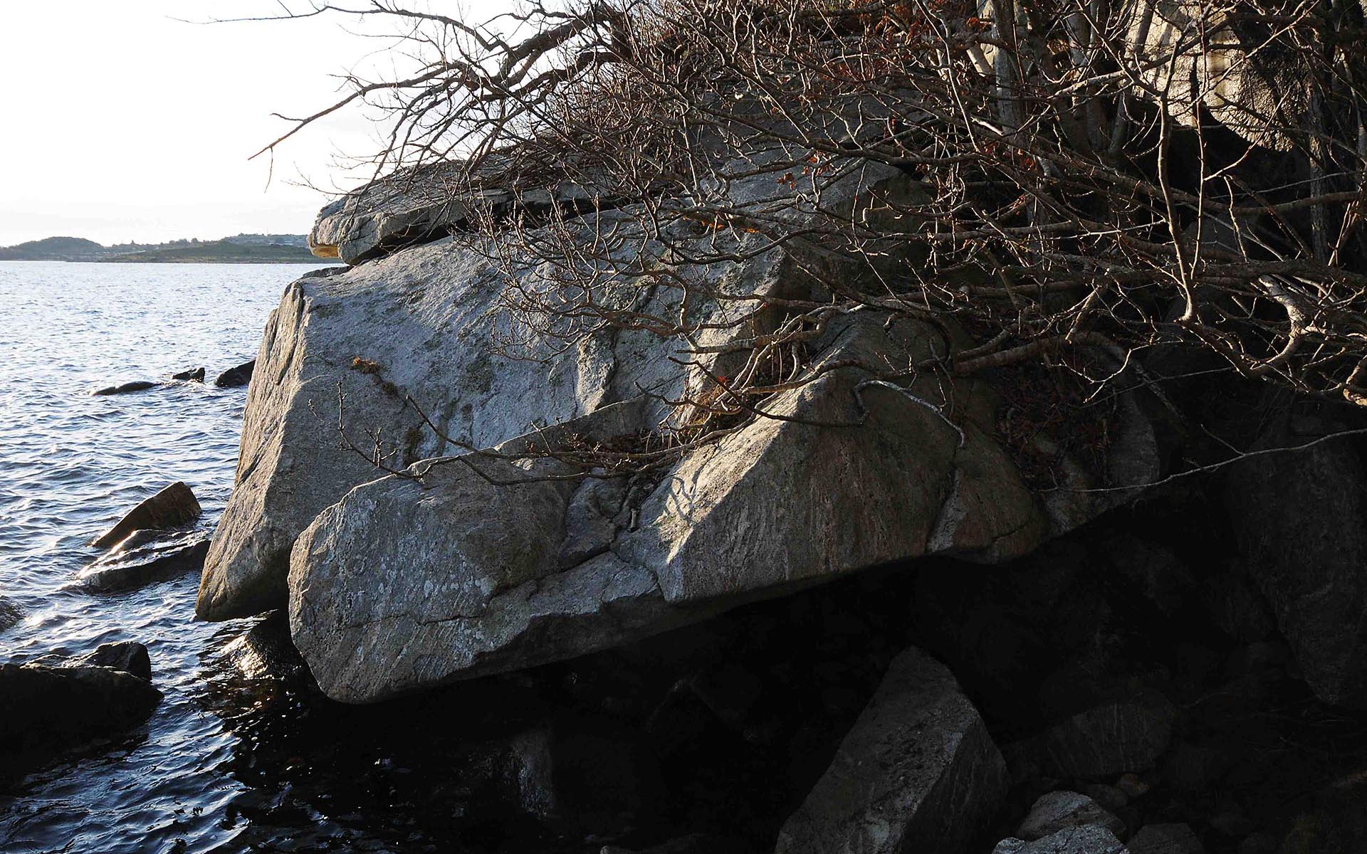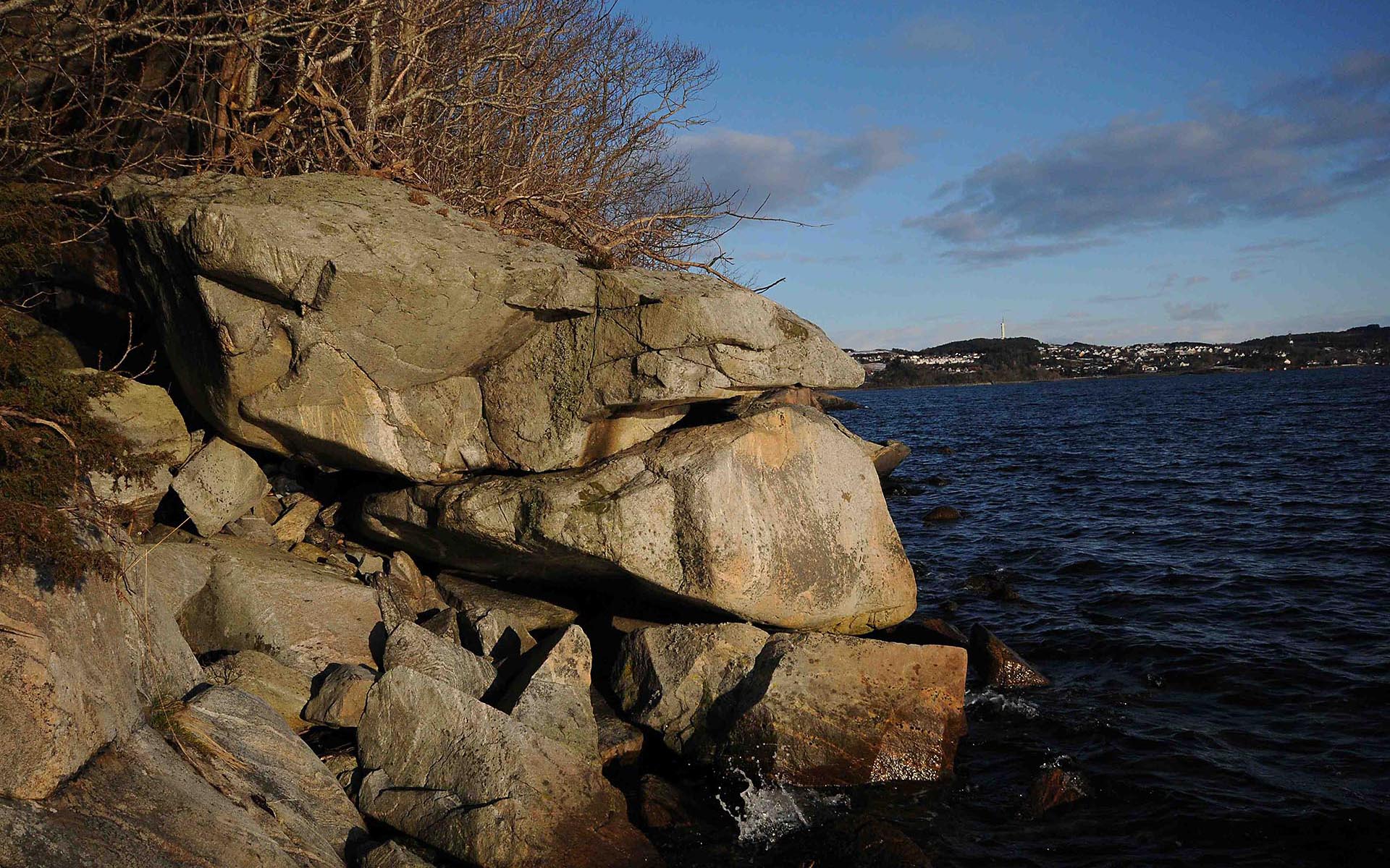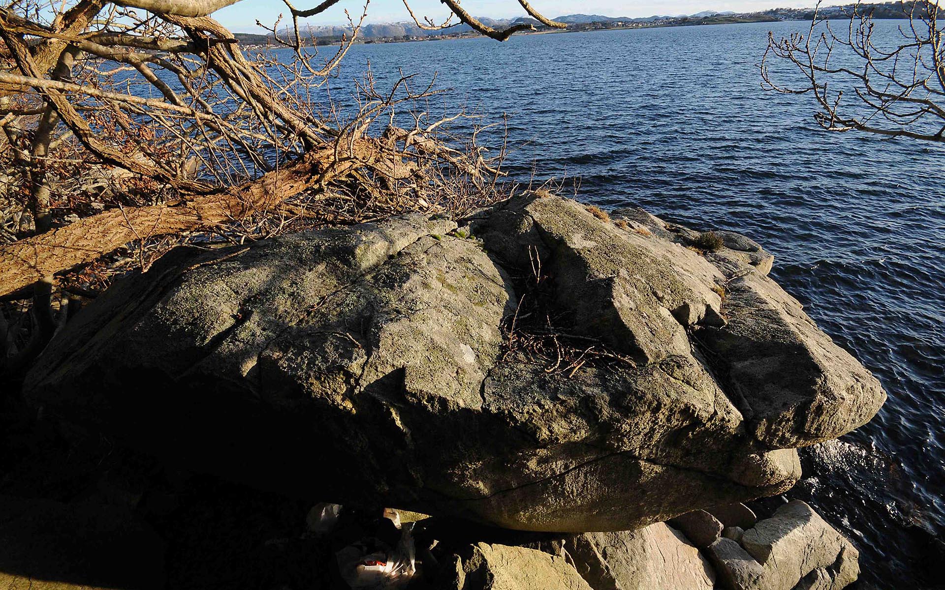 Særtrekk: Mye stein langs sjøkanten, dette den største.