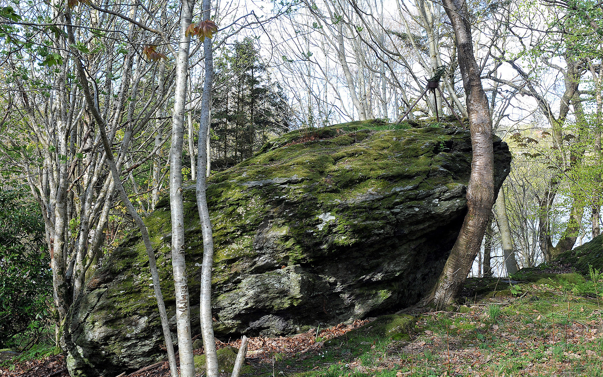 Denne steinen ligger mellom Litle og Store Stokkavatnet i Eiganes og Våland bydel.