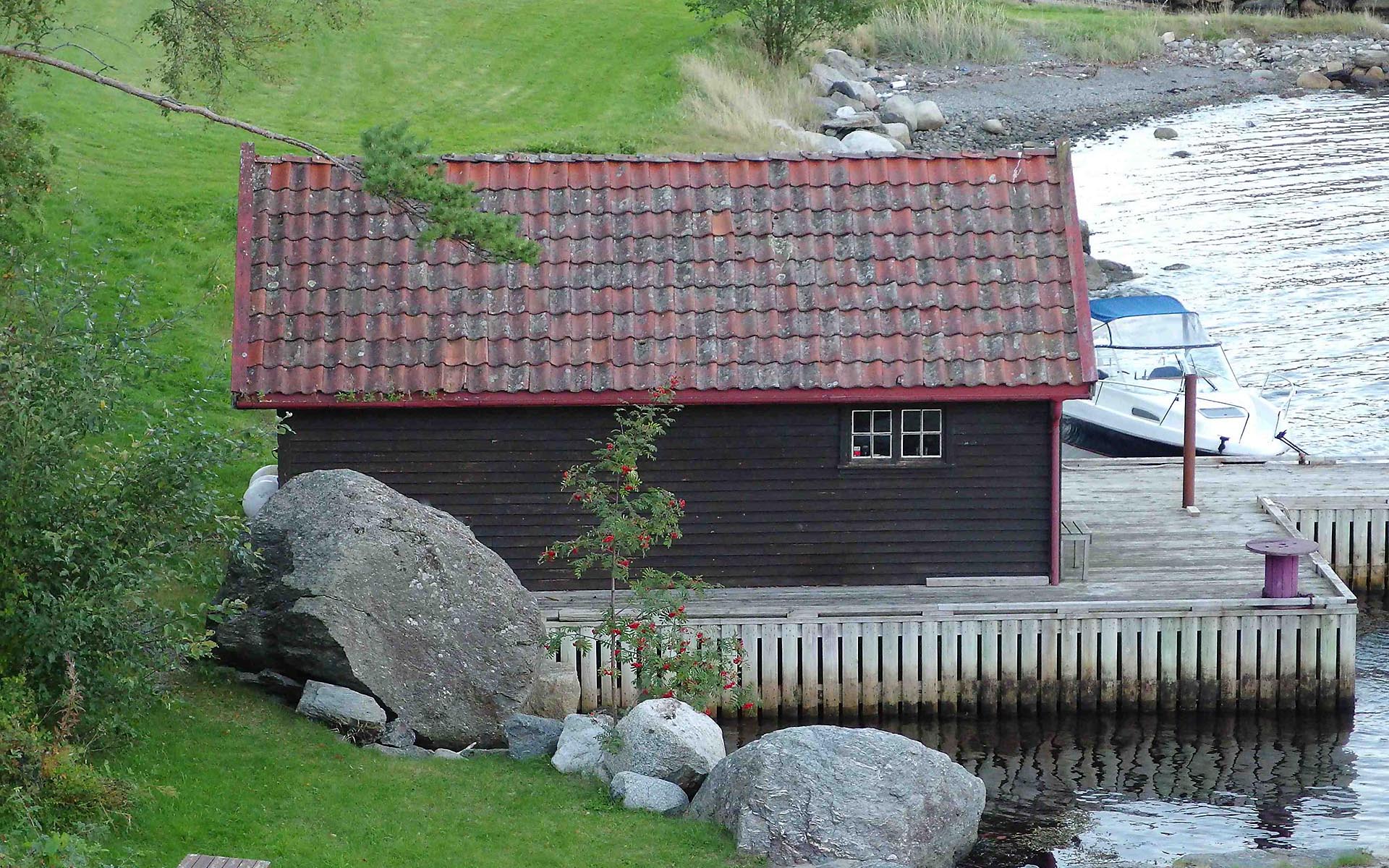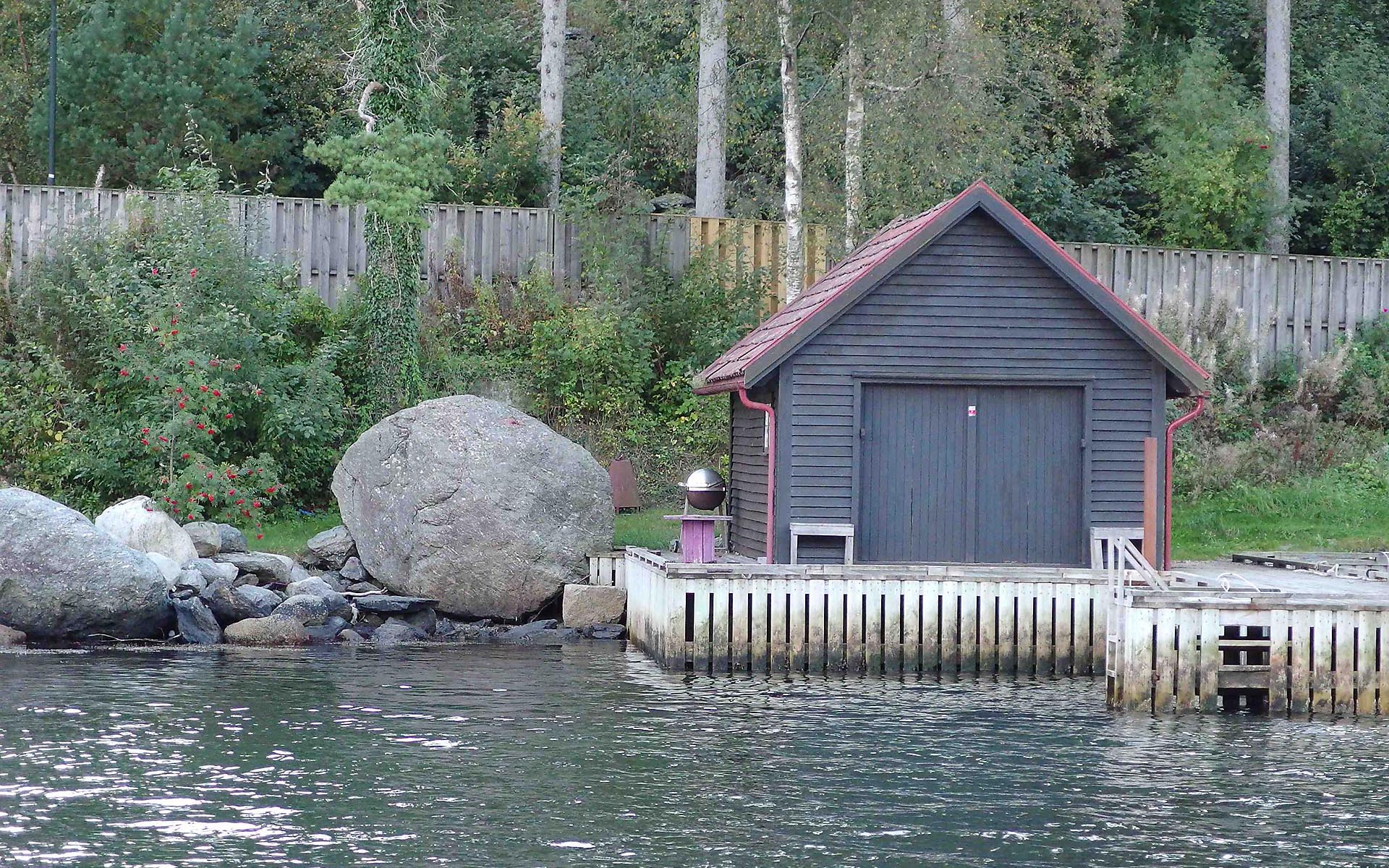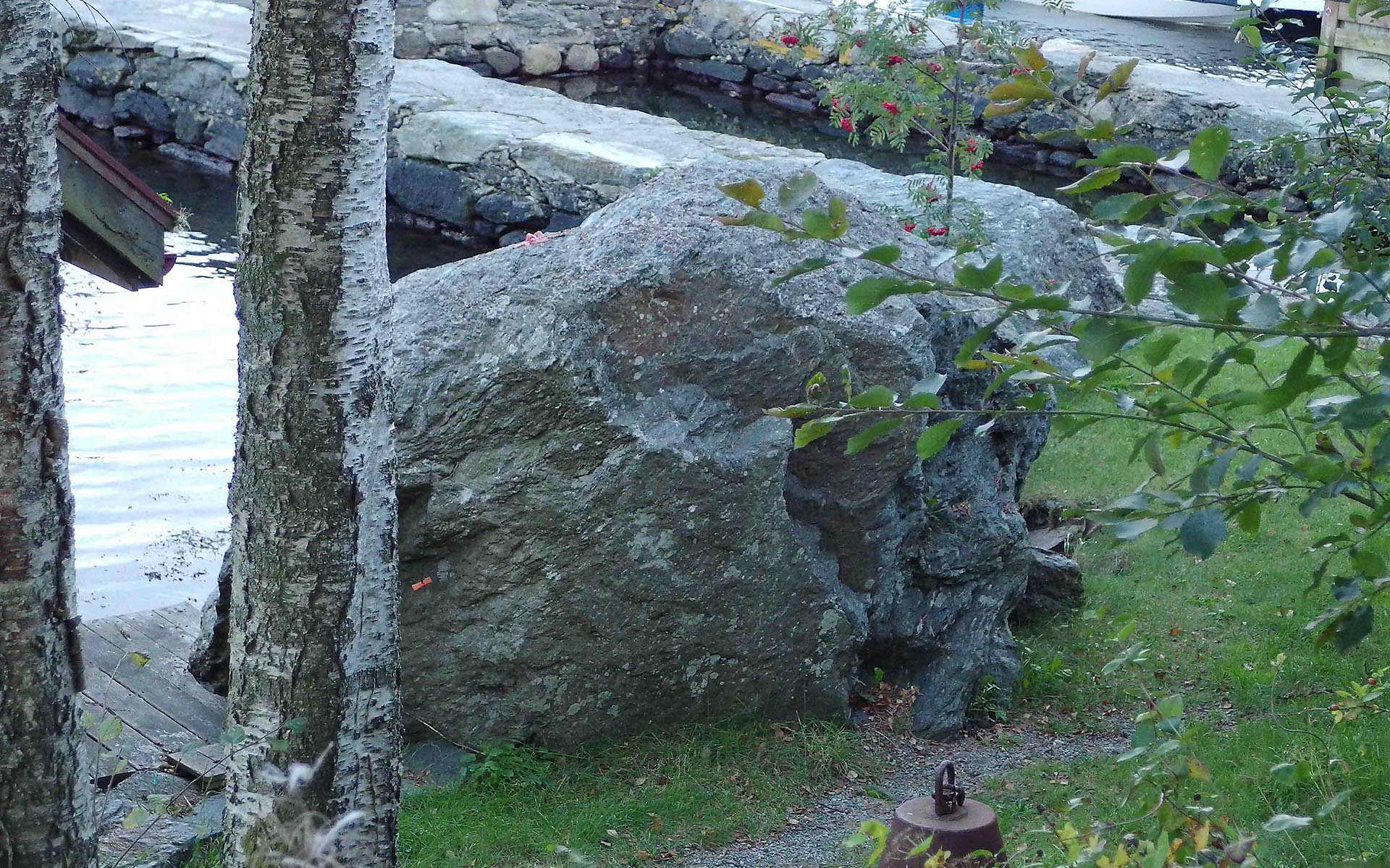 Sted: Rund blokk i flomålet kloss ved naust nest ytterst i Ramsvig.
