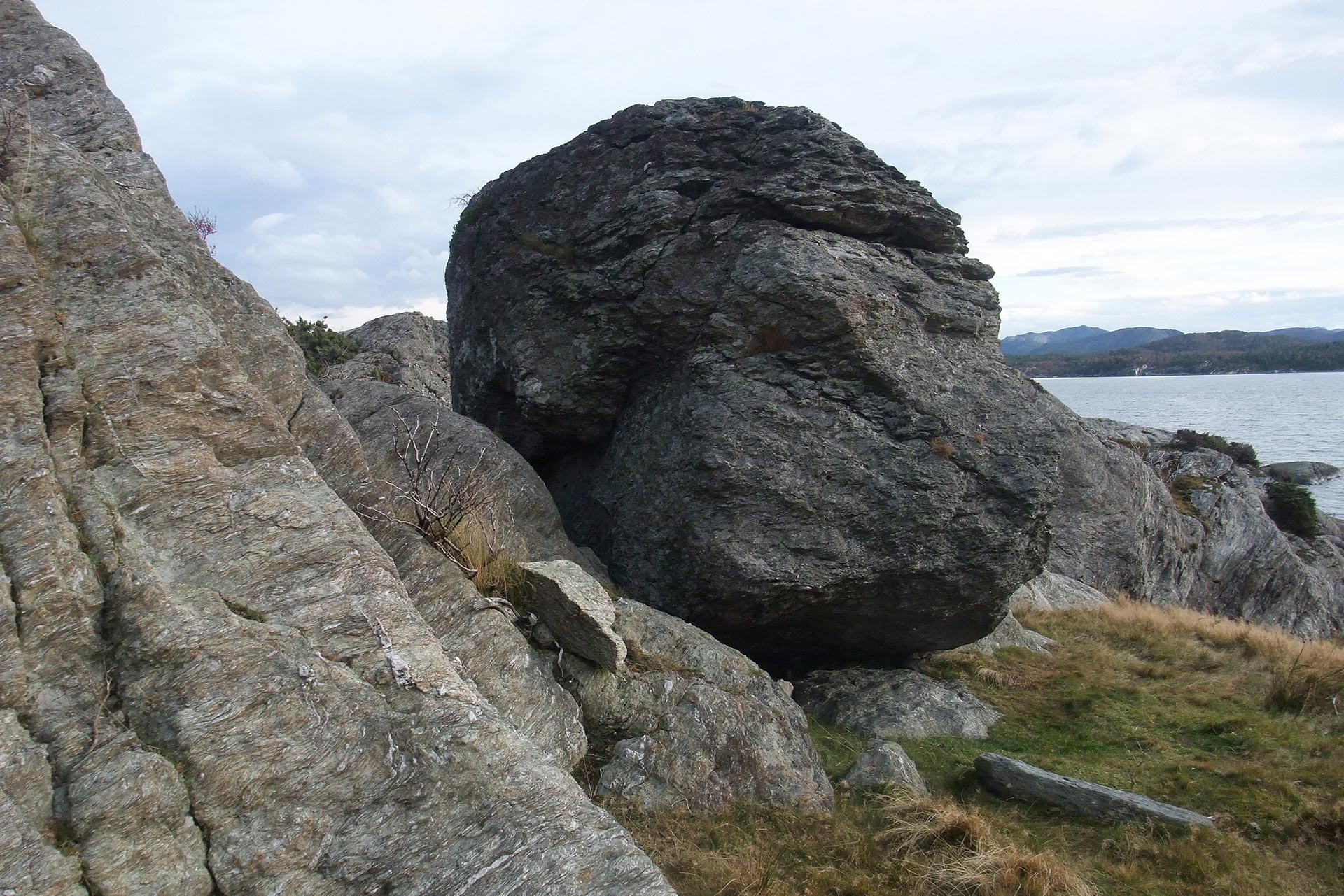 Særtrekk: Hulrom vest og øst. Mot øst er hulrommet delvis tettet med stein. Flyttblokk eller revet løs fra berget?