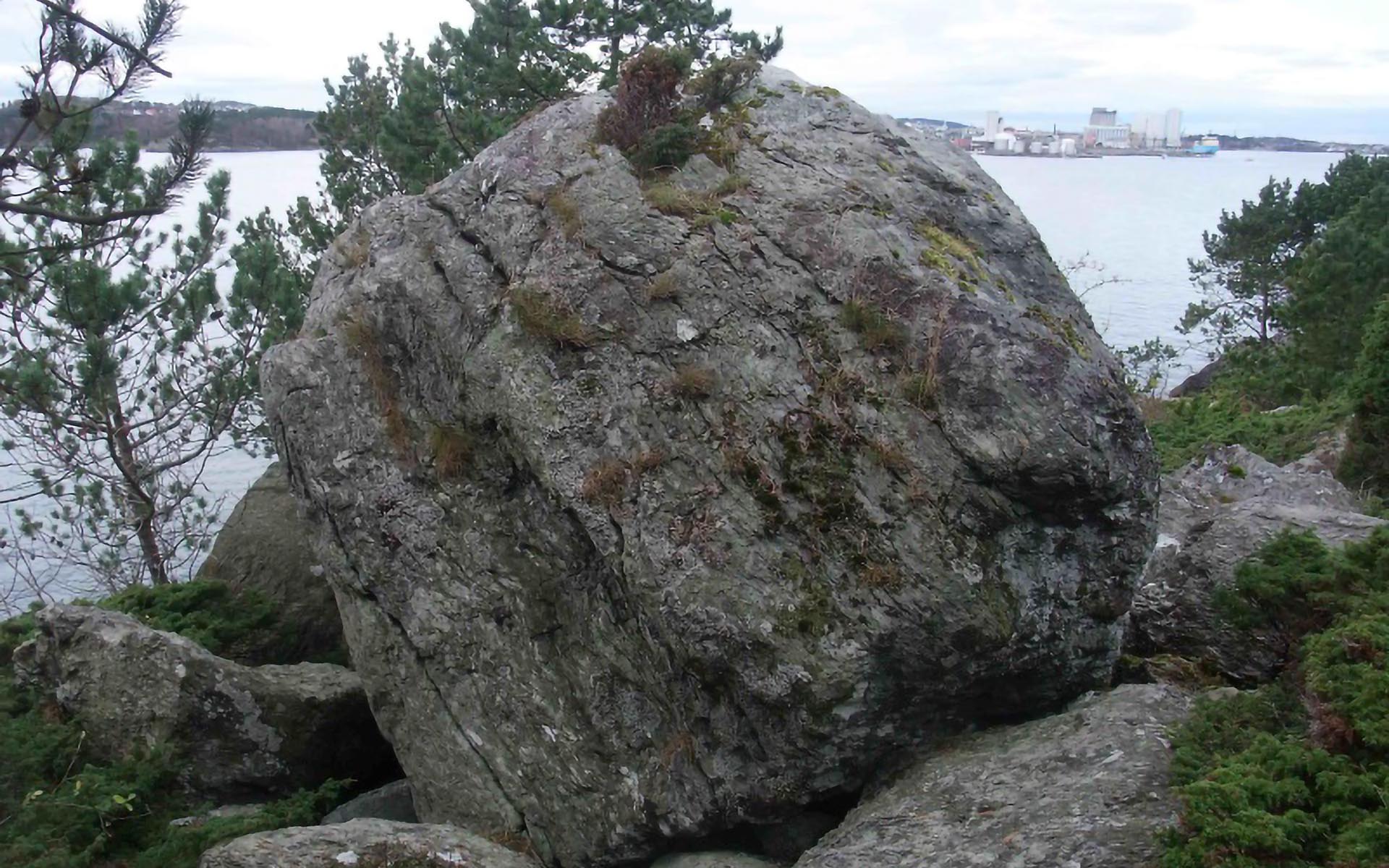 Sted: Stor blokk i mindre steinur i bratt og ulendt skråning mot vest.