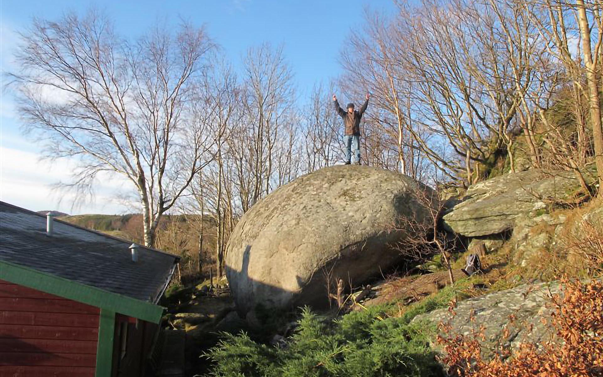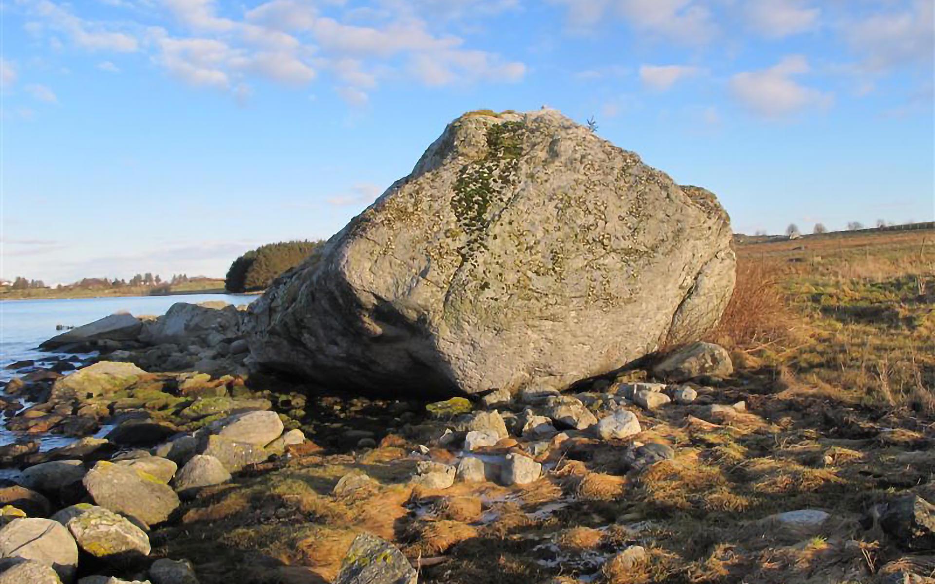 Stor blokk ved Torsteinsvika, Åmøy, like før kommunegrensen til Stavanger. I sjøkanten.
