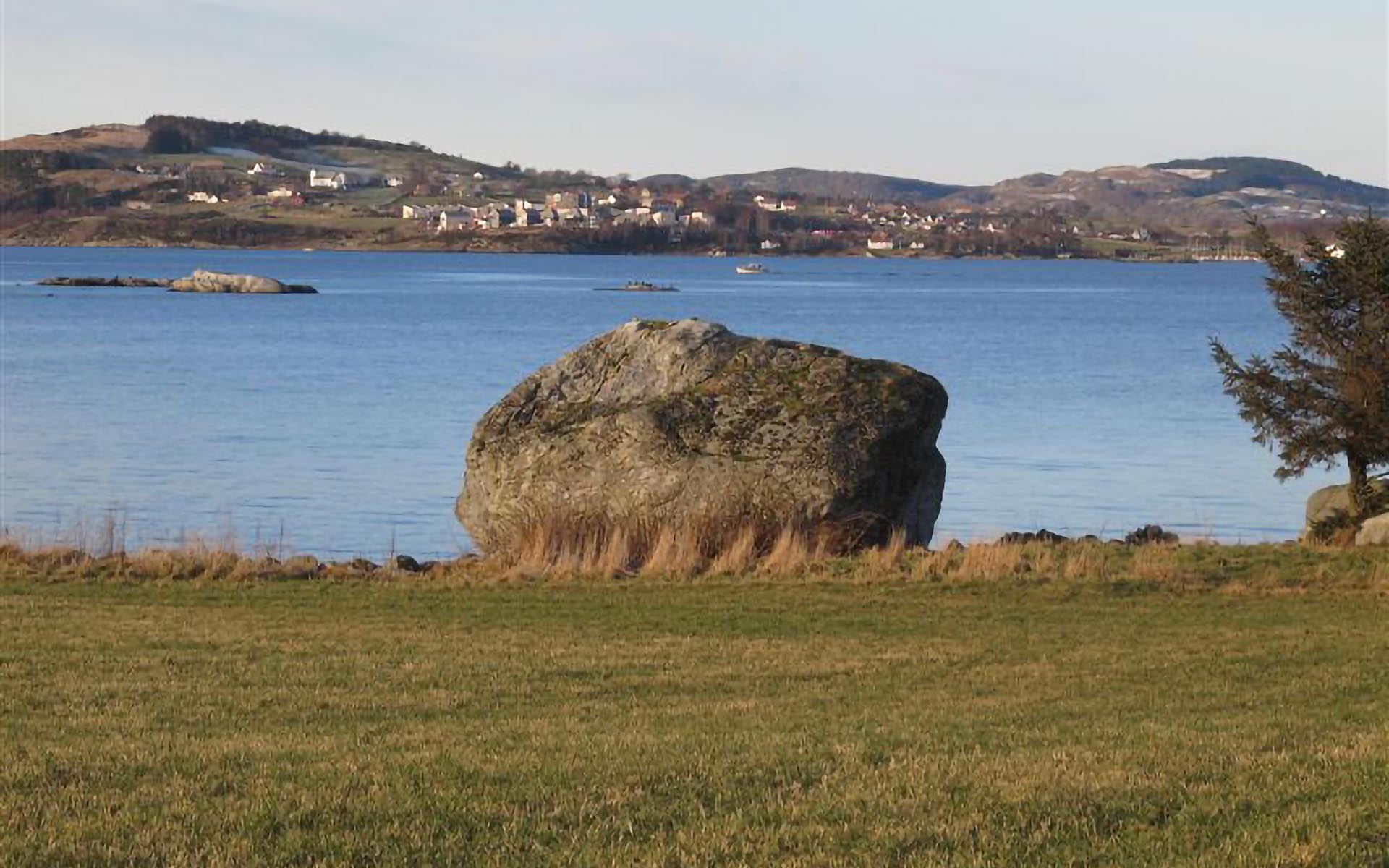 Kulturminnne: Sagn: Kastet hit av Rennesøytrollet da det i et raserianfall slang en neve «småstein» etter åmøyfolket. Noen av de andre steinene landet i sjøen utenfor Torsteinsvika og er yndet tilholdssted for skarven.